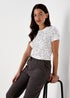 A burst of timeless elegance for your wardrobe this t-shirt is crafted from a soft, breathable fabric that ensures both comfort and a trendy look. The classic white backdrop is adorned with an array of black polka dots, offering a playful yet elegant aesthetic. Whether you’re heading to a casual outing or a weekend get-together, this versatile piece promises to elevate your style quotient.