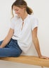 Breezy and boho, this white blouse is your go-to for effortless style. Made from lightweight fabric, it features a relaxed fit, fluttery short sleeves, and a gathered tie-neck for a touch of charm. Perfect with denim or flowy skirts, it’s easy, flattering, and endlessly wearable.