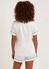 Enjoy the build-up to the big day in this gorgeous pyjama set. Lightweight and comfy, the set is styled in white and features a practical button front, short sleeves and a 'Bride' chest pocket on the shirt, together with a stretchy waistband on the matching bottoms. The whole set is finished with black trims for the ultimate contrast. Model Height: 5ft 9.