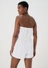 Step into summer with elegance in our White Cutwork Playsuit. Crafted from a lightweight fabric, this playsuit is adorned with intricate cutwork detailing that adds a touch of sophistication to your warm-weather wardrobe. The strapless design allows for comfortable wear, while the cinched waist accentuates your silhouette, ensuring you look as fabulous as you feel. Whether youโre heading to the beach or a brunch date, this playsuit is your go-to choice for an effortlessly chic look.