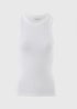 An elegant addition to your wardrobe, this white vest features a striking diamante embellishment that shimmers and sparkles. Crafted from a soft and luxurious fabric, this sleeveless top ensures utmost comfort all day long. Its classic silhouette and versatile design make it a perfect choice for both casual and formal occasions.