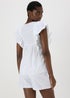Add a touch of elegance and charm to your wardrobe with the White Dobby Frill Sleeve V-Neck Blouse. Crafted from a soft, breathable polyester blend, this blouse features a delicate dobby texture that adds a subtle yet sophisticated detail to your outfit. The crisp white hue provides a versatile and timeless look. The v-neckline is designed to elongate your neck and frame your face beautifully. Pair it with tailored trousers and court shoes for a polished office look or dress it down with jeans and sandals for a more relaxed weekend ensemble.