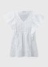 Learn moreAdd a touch of elegance and charm to your wardrobe with the White Dobby Frill Sleeve V-Neck Blouse. Crafted from a soft, breathable polyester blend, this blouse features a delicate dobby texture that adds a subtle yet sophisticated detail to your outfit. The crisp white hue provides a versatile and timeless look. The v-neckline is designed to elongate your neck and frame your face beautifully. Pair it with tailored trousers and court shoes for a polished office look or dress it down with jeans and sandals for a more relaxed weekend ensemble.