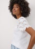 This charming and feminine top is perfect for any occasion. The delicate lace yoke adds a touch of elegance, while the relaxed fit keeps you comfortable all day long. Crafted from a soft and lightweight fabric, this tee is perfect for layering or wearing on its own.