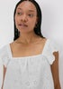Learn moreAn effortless addition to your everyday collection, the white frilled broderie cami top is a staple piece brimming with charm. Crafted from 100% cotton, this cami top promises comfort against the skin, ensuring a cool wear in the warmer months with short frilled sleeves and a breathable fabric. Its intricate broderie design and delicate ruffle details add an element of whimsy, perfect for your next special occasion. Pair with jeans and sandals for a warm everyday look or dress it up with a midi skirt and heels for an evening outfit.