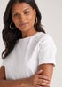 Add a chic element to your white T-shirt's with this stunning addition Styled with a comfy crewneck and a short sleeves for ultimate comfort, this gorgeous T-shirt is finished with stunning lace detailing to the shoulders for a trendy touch. Crafted with 100% cotton to ensure a cosy wear, it's perfect for work and weekend outfits. Model Height: 5ft 9.