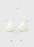 Learn moreFreshen up your swimwear with a zesty twist in this White Lemon Triangle Bikini Top. Featuring a playful all-over lemon print on a crisp white background, this piece brings a fun and fruity vibe to your beach or poolside look. Designed with classic triangle cups and adjustable halter and back ties, it offers a custom fit that’s both flattering and supportive.