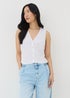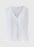 Learn moreKeep it cool and classic with this white linen blend button-up vest top. Lightweight and breathable, it’s perfect for warm days, while the button-front detail adds a touch of timeless charm. Whether paired with denim, linen trousers, or layered under a blazer, this versatile piece brings effortless elegance to your summer wardrobe.