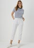 Embrace the timeless beauty of linen with our tapered trousers in off-white. Elevate your everyday style with these versatile trousers that transition effortlessly from day to night. Crafted from premium quality linen, these trousers are designed to offer a relaxed fit while ensuring you look impeccably stylish. The elastic waistband and drawstring ensure a perfect fit, while the tapered design offers a modern, chic look. Dress up your linen tapered trousers with a silk blouse and heels for a sophisticated evening ensemble or for a casual chic look, pair them with a striped tee, denim jacket, and sneakers.