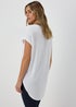 This wardrobe essential boasts a clean, minimalist design in a classic white hue. The longline cut offers a flattering silhouette, perfect for pairing with leggings or jeans for a casual yet refined look. Crafted from premium, soft fabric, it ensures comfort all day long.