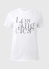 This t-shirt features a clean white color and is adorned with "Los Ang Eles" text on the front, creating a playful and stylish design. The relaxed fit and versatile color make it perfect for everyday wear, whether you're exploring the city or enjoying a laid-back day. Crafted for both comfort and fashion, this White Los Angeles T-Shirt is an excellent choice for expressing your love for the iconic city.