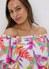 White Multicolour Leaf Print Bardot Dress