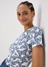 Learn moreEmbrace the elegance of simplicity with this beautiful top. Crafted from a soft, breathable fabric, this top ensures both comfort and style. The delicate butterfly print, in varying shades of blue, dances across the white backdrop creating a serene and graceful aesthetic. With its short sleeves and classic round neckline, this piece is a versatile addition to any wardrobe. It is perfect for casual outings or layered under a blazer for a touch of sophistication.