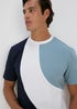 Embrace contemporary style with our White & Navy Cut & Sew Wave T-Shirt. This short-sleeved tee combines classic white and deep navy hues in a bold, wave-inspired pattern that adds an artistic touch to the garment. The cut and sew technique ensures a high-quality construction with clean lines and a comfortable fit. The t-shirt’s design is carried through to the back, maintaining the wave pattern for visual interest from all angles. Ideal for those looking to add a modern piece to their casual wardrobe, this t-shirt pairs well with jeans or shorts for an effortlessly cool look.