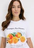 Refresh your casual collection with our White Orange Print T-Shirt, designed for those who appreciate a blend of simplicity and vibrant style. This t-shirt features a mediterranean summer orange print on a classic white background, making it a standout piece for everyday wear. Made from 100% premium cotton, this t-shirt offers a soft, breathable feel that ensures comfort all day long. Designed with a regular fit, this t-shirt offers a relaxed and flattering silhouette suitable for all body types. Knot it at the waist and pair it with shorts for a summery vibe or layer it under a denim jacket for a trendy, street-style look.
