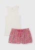 White Ribbed Vest & Viscose Shorts Set