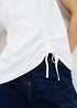 Refresh your wardrobe with this 100% cotton white T-shirt, cut in a regular fit for comfort. It features a classic crew neckline and short sleeves, while the ruched tie front detailing at the hem adds subtle shape and interest. Ideal for pairing with jeans, skirts, or shorts, this versatile piece brings a touch of effortless style to any casual outfit.