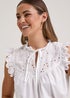 From work to weekends, this blouse is perfect for everyday wear! Styled in a practical white tone, it features gorgeous frill detailing to the neck and sleeves with a trendy tie neck for a personalised fit. Crafted with a super soft and comfortable material, it's finished with a stunning schiffli design for an ultra feminine finish. Model Height: 5ft 9.