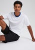 Learn moreKeeping comfy at home doesn't get much easier with this super soft pyjama set. Crafted from cotton, the set features a pair of short black pyjama bottoms with an adjustable waistband and a white top with a blue trim, a classic crew neckline and comfy short sleeves.