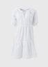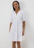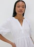 Learn moreOur White Tiered Smock Mini Dress is a must-have for your summer wardrobe. This charming dress is crafted from pure cotton, ensuring utmost comfort and longevity. Its relaxed, smock silhouette flatters all body types, making it a versatile piece you'll reach for time and again. Featuring a v-neckline and puffed cuffed sleeves in a mini design. - Pair with sandals and a sunhat for a relaxed summer look or add a denim jacket and ankle boots for a stylish autumn ensemble.