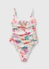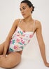 Make a splash in this elegant white tropical floral swimsuit. Designed with shapewear panels, it offers a flattering silhouette, while the ruched detailing enhances your natural shape. Practical functions include a sturdy back fastening, together with removable straps, so that the swimsuit can be worn as a bandeau style if you prefer. The vibrant floral print brings a summery feel, perfect for poolside lounging or beach days.