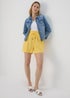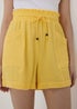 Take your summer style to new heights with our vibrant Double Cloth Shorts in a cheerful yellow hue. These shorts are crafted from a durable, double-layered fabric that provides a structured yet relaxed fit. The high-waisted design and tailored cut elongate your silhouette, while the slightly cropped length adds a modern touch. Pair it with a tucked-in blouse and heels for a sophisticated office look or dress it down with a casual tee and sandals for a laid-back weekend vibe.