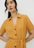 Add a splash of bold colour to your work to weekend wardrobe with this vibrant shirt dress. Crafted from yellow textured jersey fabric, the timeless dress is cut in a billowing midaxi silhouette. Featuring a smart open collar, full button front, short sleeves and a belted waist, it combines the classic shirt dress design with a flattering shape that nips in at the middle.