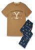 Howdy there, ranch enthusiasts and lovers of the wild west! Wrangle up comfort and style with the Yellowstone Men's Pyjama Set - a rugged ensemble featuring a Dutton Ranch tan short sleeve graphic tee paired with navy all-over print long leg bottoms. This isn't just sleepwear; it's your ticket to drifting off into dreams of wide-open spaces and cowboy charisma. Imagine this: you, lounging in this pyjama set, feeling like you're part of the Dutton legacy, ready for a night under the western stars. This isn't just a pyjama set; it's like wearing the essence of Dutton Ranch to bed, complete with the iconic logo. You'll be the cowboy king of your own dreams, and your friends will be wondering if you've got a secret cattle ranch hidden somewhere in the backyard. It's like being part of the Yellowstone family without the risk of clashing with rival ranchers. I know you're a Yellowstone fanatic with a love for western charm - who isn't, right? This pyjama set is your ticket to a night filled with cowboy dreams and unmatched comfort. So, ranch enthusiasts and lovers of all things cowboy, don't miss out on this chance to level up your sleepwear game. Grab your Yellowstone Men's Pyjama Set now and let the bedtime rodeo begin, one comfy moment at a time. Giddy up and drift into dreams of the wild west, partner!