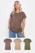 Yours 3 Pack Curve Brown & Green Essential T Shirts