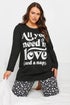 Yours 4 Pack Curve Black All You Need Is Love Pyjama Set
