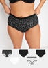 Yours 5 Pack Curve Black & White Butterfly Design High Waisted Full Briefs