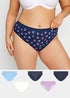 Yours 5 Pack Curve Navy Blue Heart Print High Leg Knickers