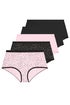 Yours 5 Pack Curve Pink & Black Heart Print Full Briefs