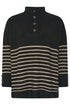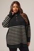 Yours Black & Beige Brown Striped Button Neck Jumper