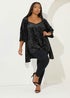 Add this new-in style to your wardrobe with this must-have kimono from Yours Curve! Made from a comfortable woven fabric, it features a star detail, 3/4 length sleeves, and an open design. Layer over the matching vest for the perfect evening outfit! Model is 5'7"/173 cm and size UK 16 / EU 44.