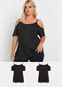 Yours Curve 2 Pack Black Cold Shoulder T-Shirts