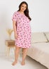 Yours Curve 2 Pack Pink & Grey Fruit Print Soft Touch Nightdresses
