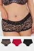 Yours Curve 3 Pack Red & Black Leopard Print Lace Mid Rise Shorts
