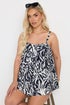Yours Curve Black Abstract Animal Print Pleat Front Tankini Top