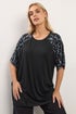 Yours Curve Black Animal Detail Sleeve T-Shirt