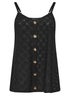 Yours Curve Black Broderie Anglaise Button Vest Top