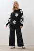 Yours Curve Black Daisy Knitted Jumper