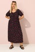Yours Curve Black Ditsy Floral Tie Neck Maxi Dress
