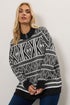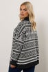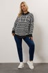 Yours Curve Black Fairisle Quarter Zip Jumper