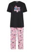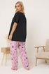 Yours Curve Black 'Feline Sleepy' Wide Leg Pyjama Set