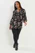 Yours Curve Black Floral Notch Neck Blouse