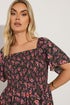 Yours Curve Black Floral Print Square Neck Midaxi Dress