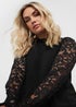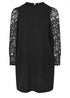 This new-in lace dress is a must-have in your wardrobe this season! Made from a comfortable jersey fabric, it features long lace sleeves, a high neckline with a lace trim, and a mini length. Style with boots and a jacket for a weekend winning look you will love to wear! Model is 5' 9.5" / 176.53 cm and size UK 16/EU 44.