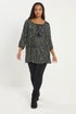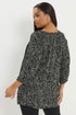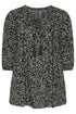Yours Curve Black Leaf Print Tie Neck Top