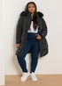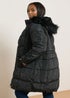 Stay warm and on-trend with this must-have puffer coat. Made from a comfortable woven fabric, it features a zip fly and popper fastening, an adjustable drawstring waist for the perfect fit and a cosy hood with a faux fur trim to keep out the chill. Throw on over any outfit for an easy layer of everyday warmth. Model is 5'7"/173 cm and size UK 16 / EU 44.